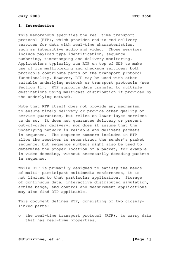 RTP Protocol: RFC 3550 - Hardcover Edition