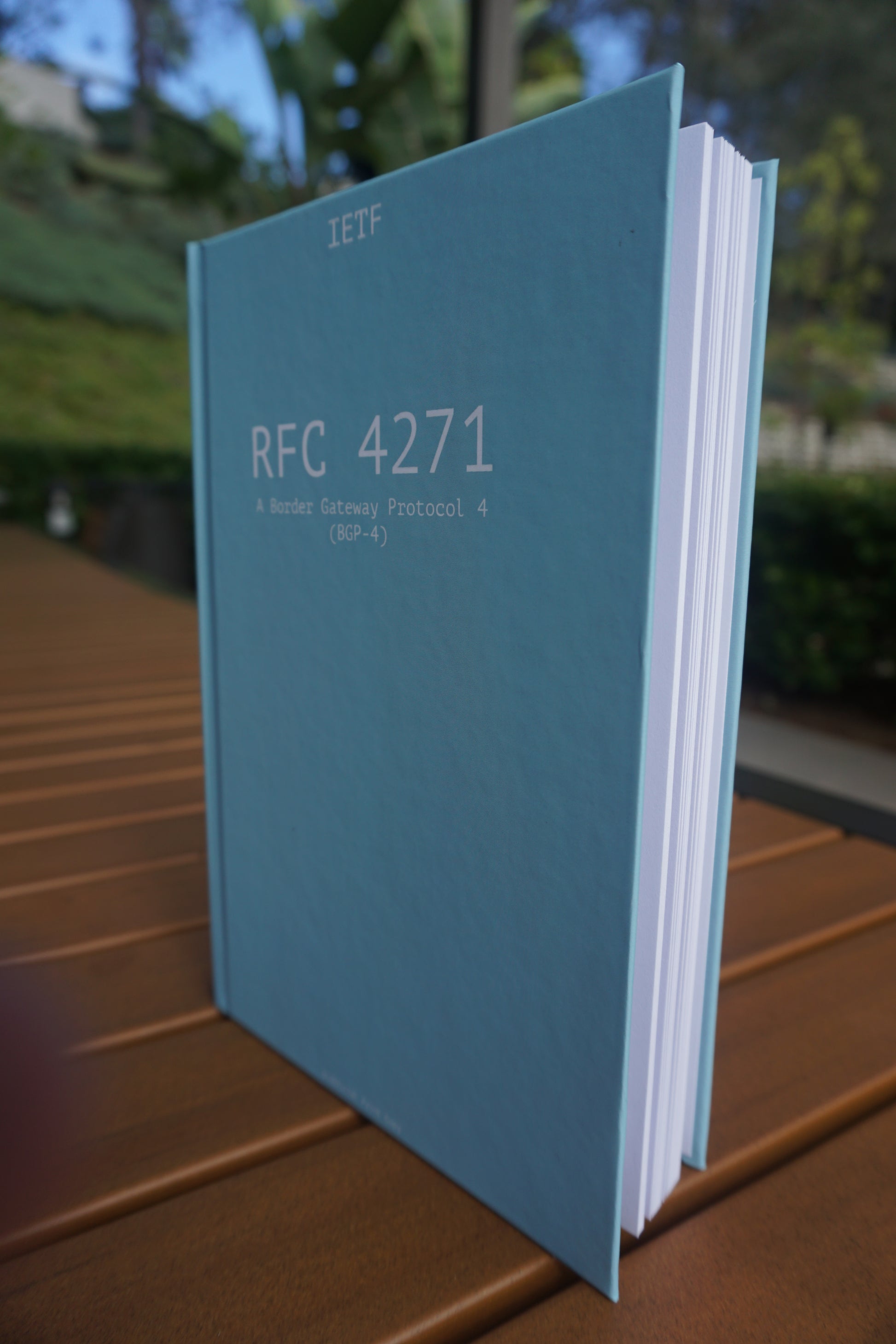 Border Gateway Protocol specification in premium hardcover. RFC 4271 with original ASCII routing diagrams. The protocol that routes the entire internet, beautifully bound for network engineers.